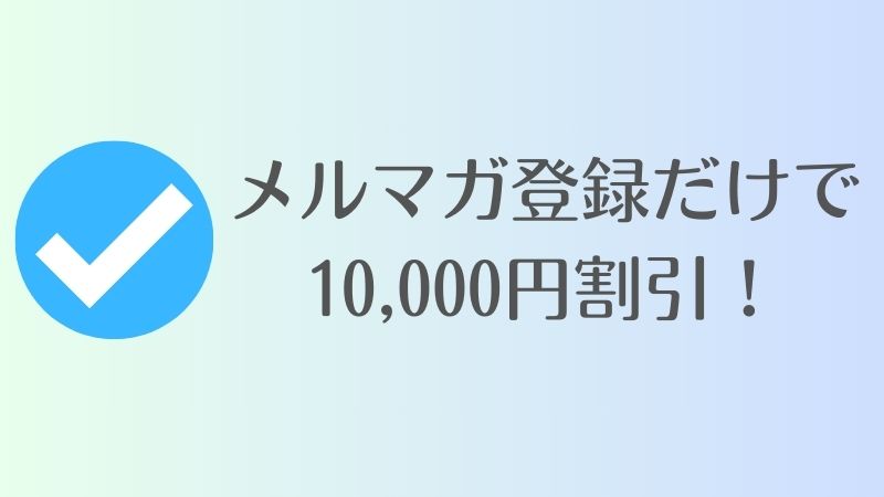 購入前に会員登録をするだけで10,000円割引クーポンがもらえます。